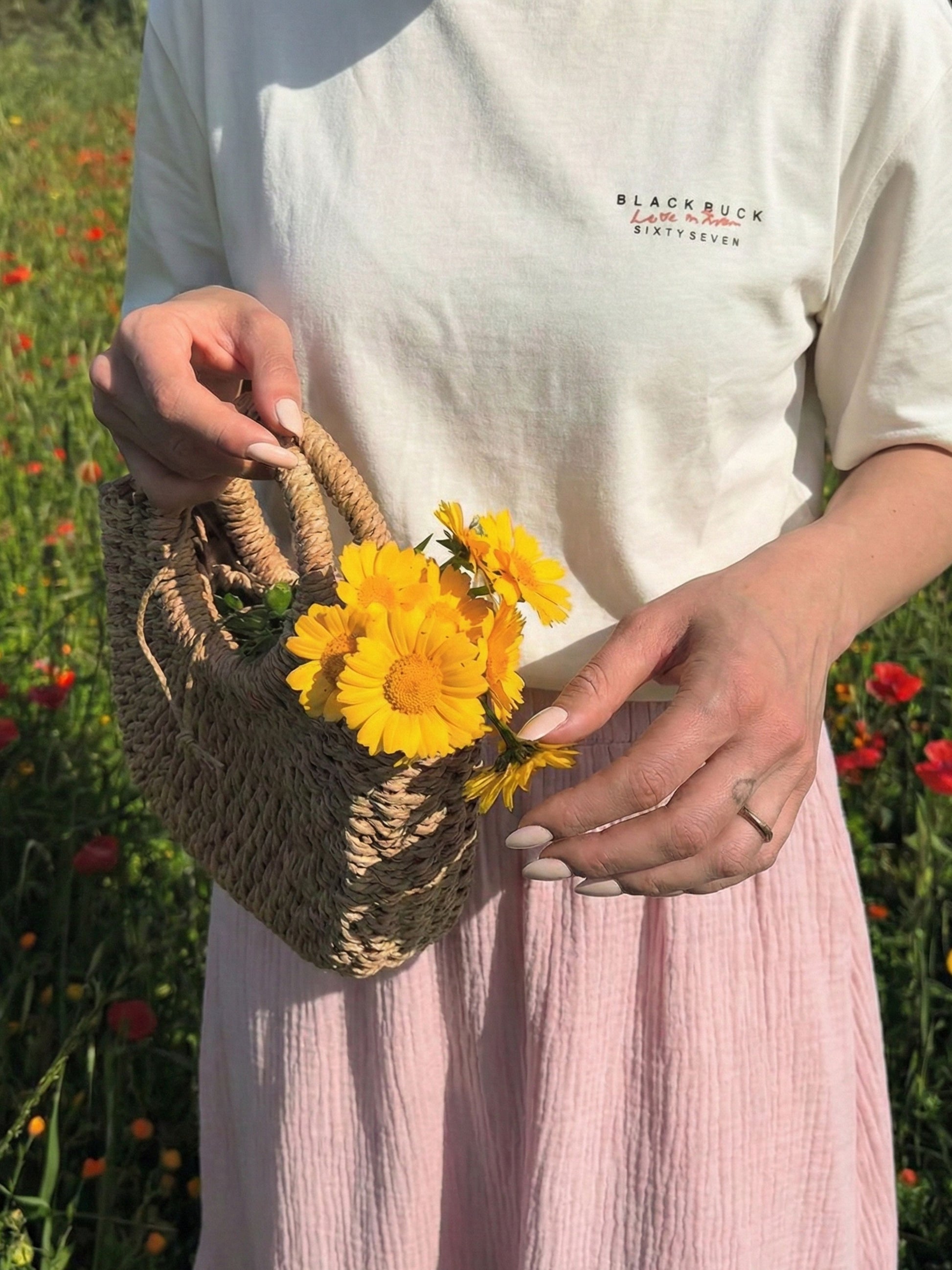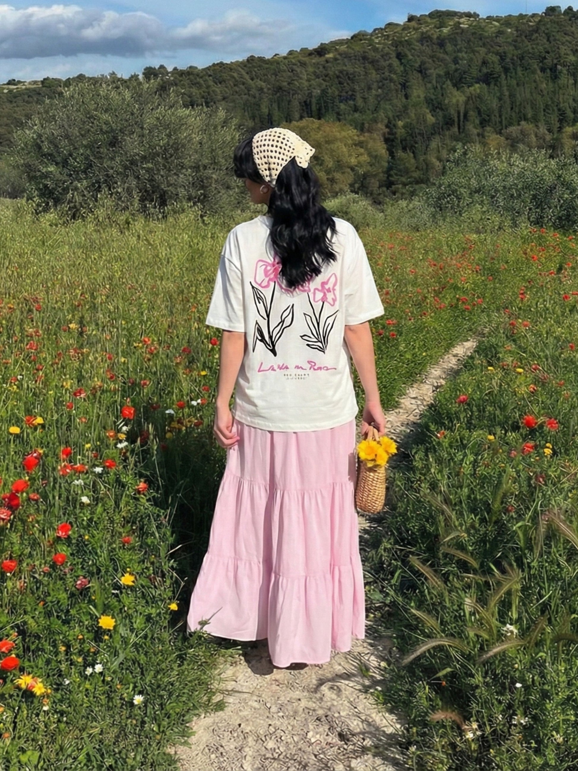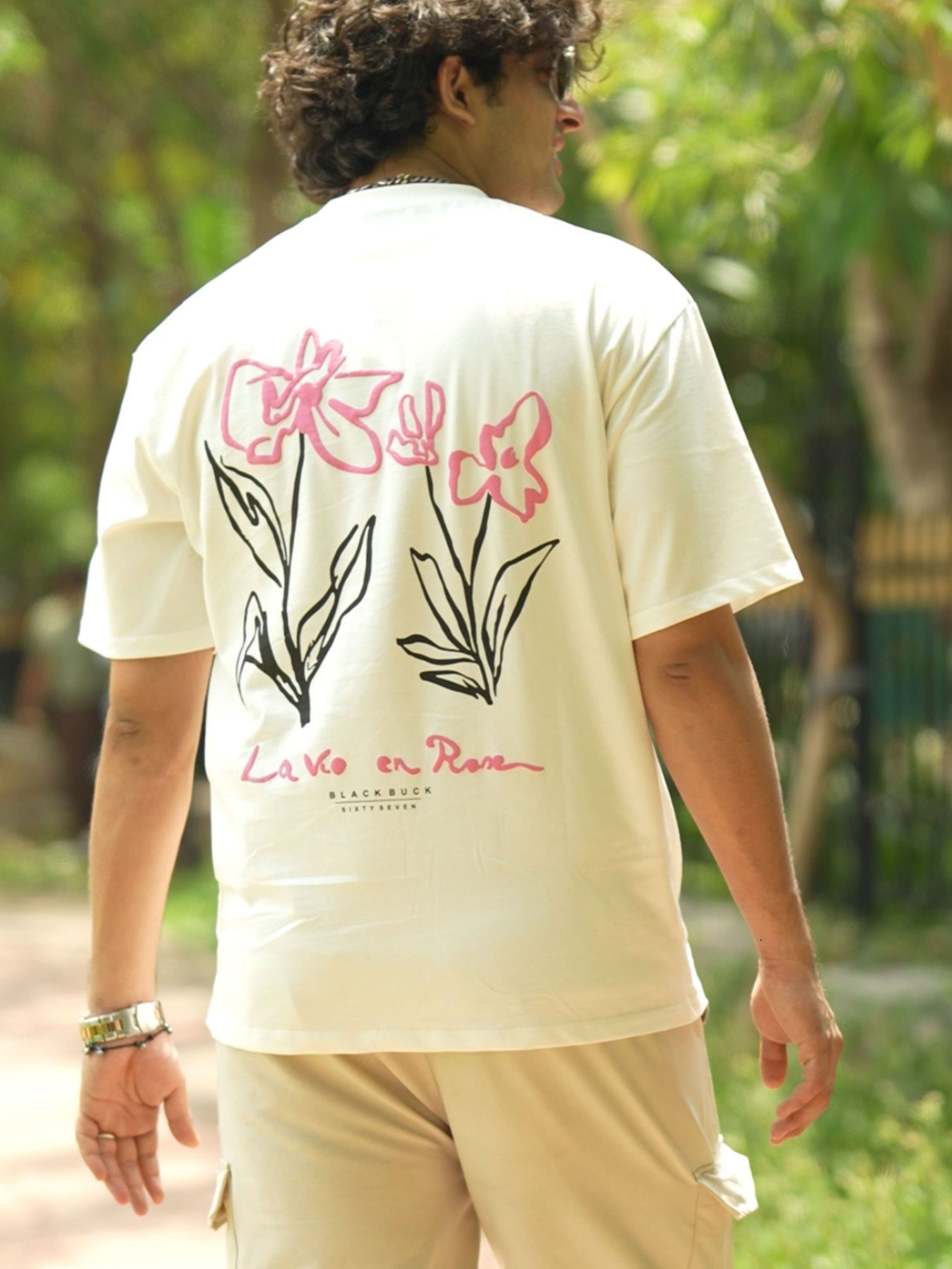 Crafted from ultra-soft cotton for all-day ease, this tee features a minimalist front and a bold floral print at the back, where soft pink blooms meet clean lines to celebrate optimism, calm, and quiet confidence.