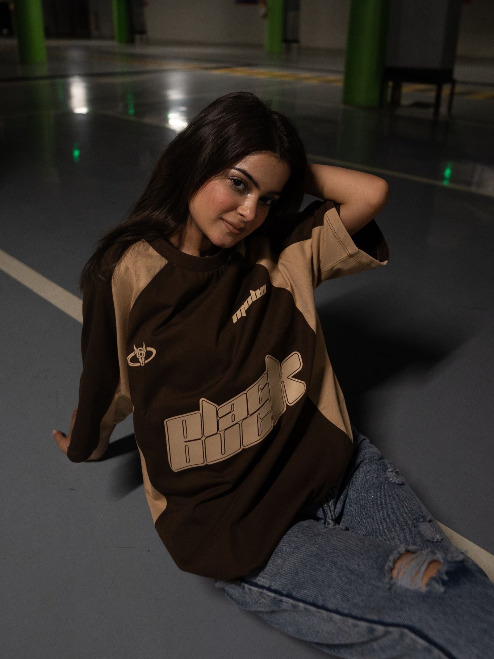 Our model is 6'1, chest-39 and is wearing a large size, oversized fit